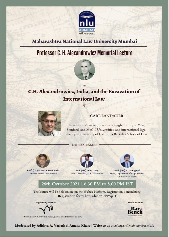 Weera Centre was the supporting partner in this interesting lecture by Dr. Carl Landauer organised on 26 October 2021 by Maharashtra National Law University, Mumbai in memory of Professor C.H. Alexandrowicz.